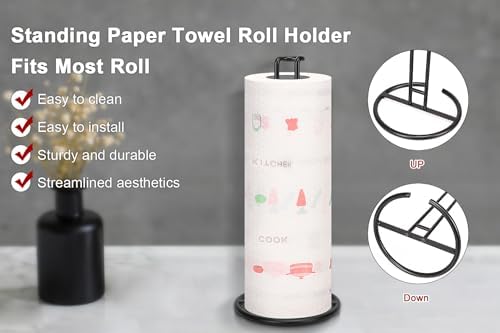 NearMoon Paper Towel Holder/Stand Dispenser, Sturdy, All Metal, Standard or Jumbo-Sized for Kitchen Countertop, Farmhouse, Living Room (1 Pack, Matte Black)